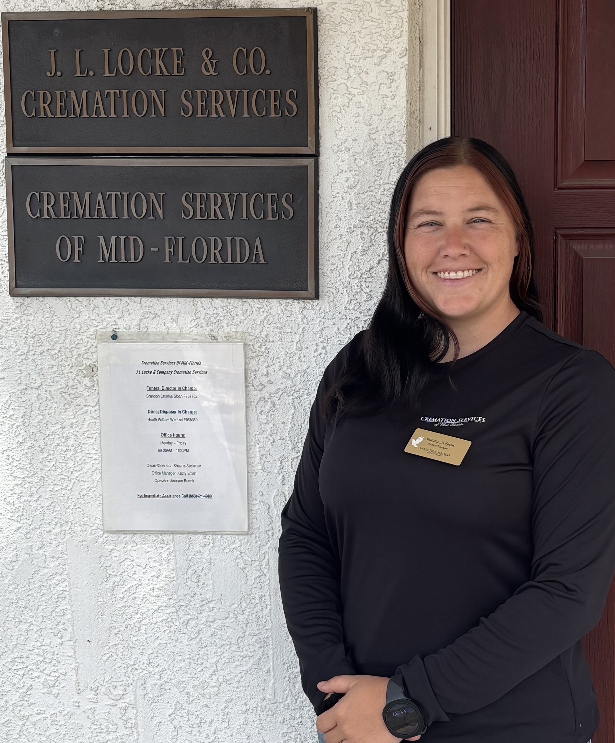 Shauna Seckman is the dedicated owner of Cremation Services of Mid-Florida with six years of experience in the funeral service, Shauna provides compassionate care that honors a family’s wishes with dignity and grace. Shauna works tirelessly to ensure families feel supported, comfortable and welcomed. When not dedicated to serving families, Shauna enjoys fishing, theme parks and spending time with her animals and her beloved Fiance Mathew and their three children.